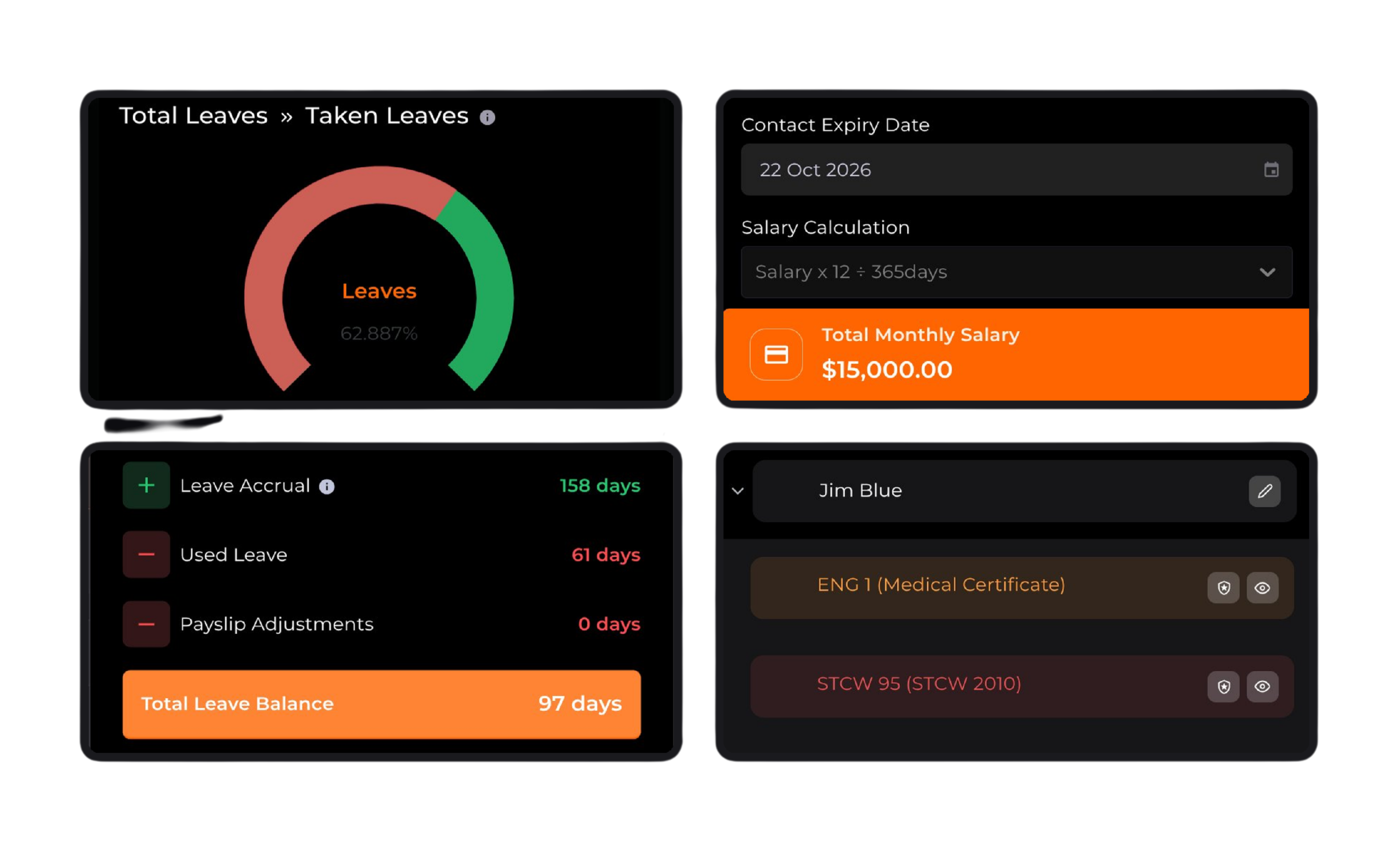 Manage daily operations, maintenance tasks, crew schedules, and compliance — even offline. Designed for the realities of life at sea.