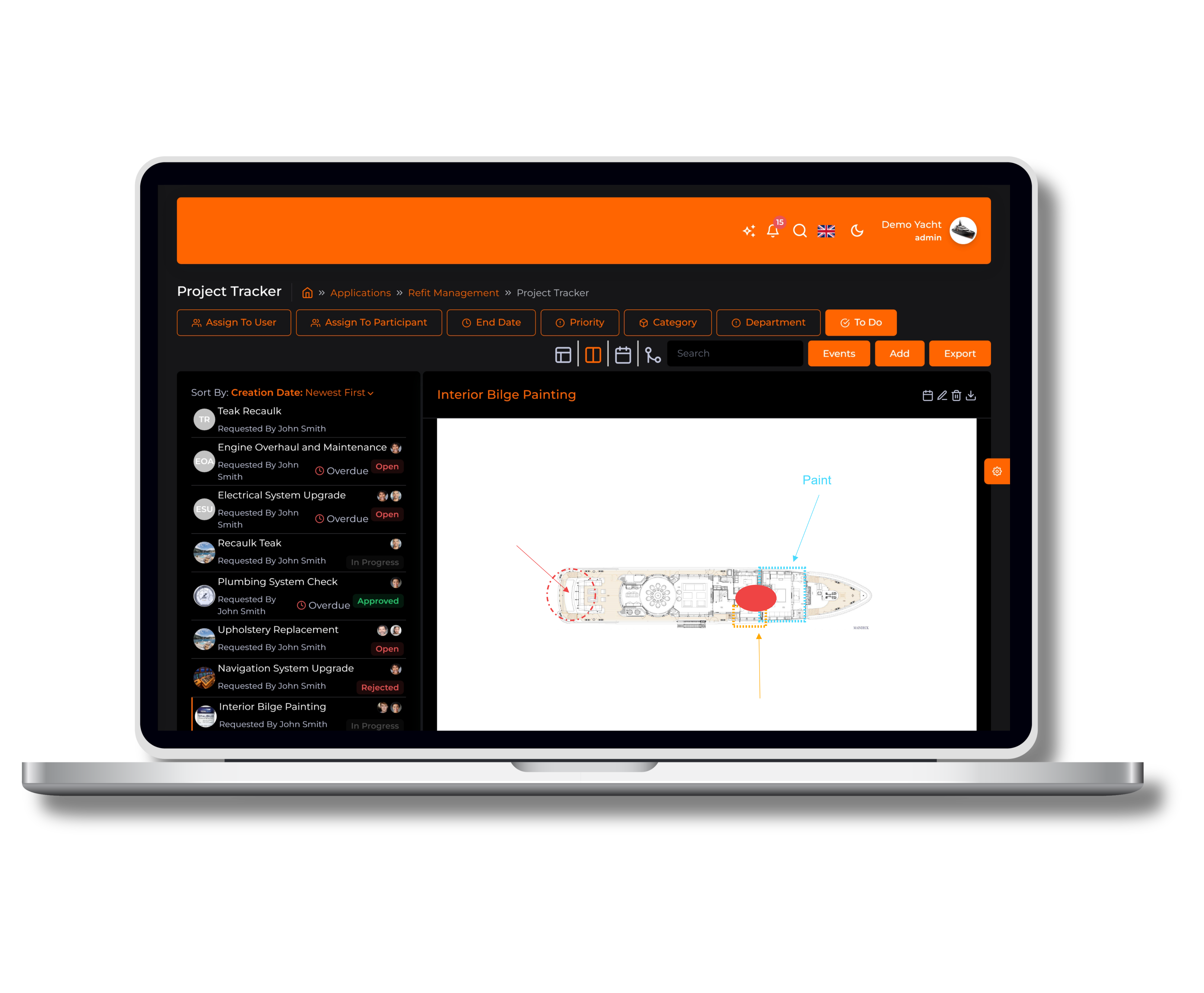 Coordinate complex refit projects, manage subcontractors, and maintain full visibility into timelines, budgets, and deliverables — all from one platform.